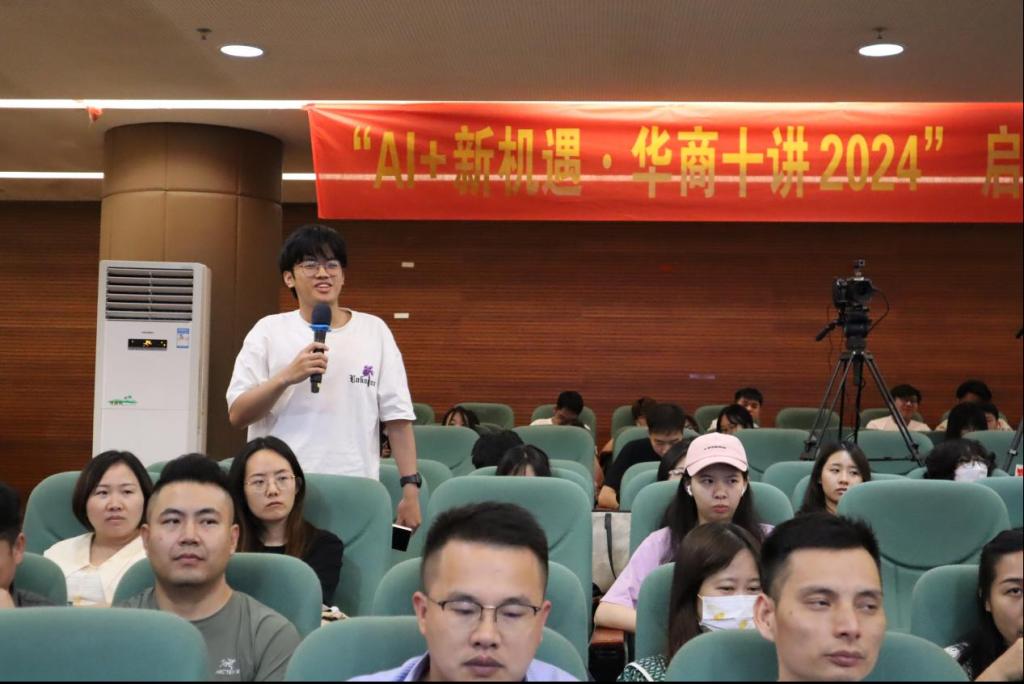 “华商十讲”启动仪式上,tyc7111cc太阳成党委陈玉欢书记致辞。她指出,当今时代AI技术突飞猛进,给各行业带来了新的挑战和机遇,大湾区的建设、融合日新月异,“一带一路”合作更加深入广泛。AI+大湾区+“一带一路”+各行业,会给我们的经济生活、社会发展,特别是教育工作带来深刻变化,我们要认真探讨和研究,让AI在湾区建设中发挥其突出作用。她表示,要以不同的视角分析AI技术与各行业融合的前景,提高湾区师生“AI能力”,更好地面向“AI时代的职场”。