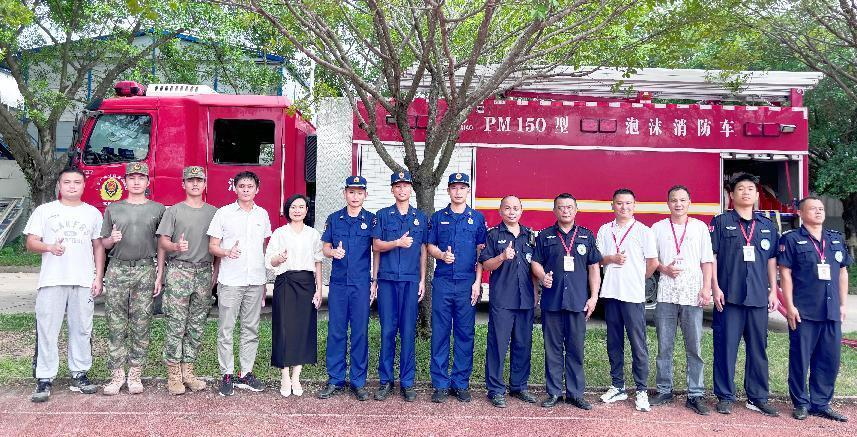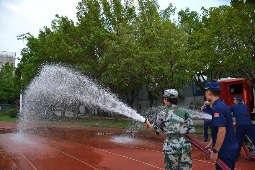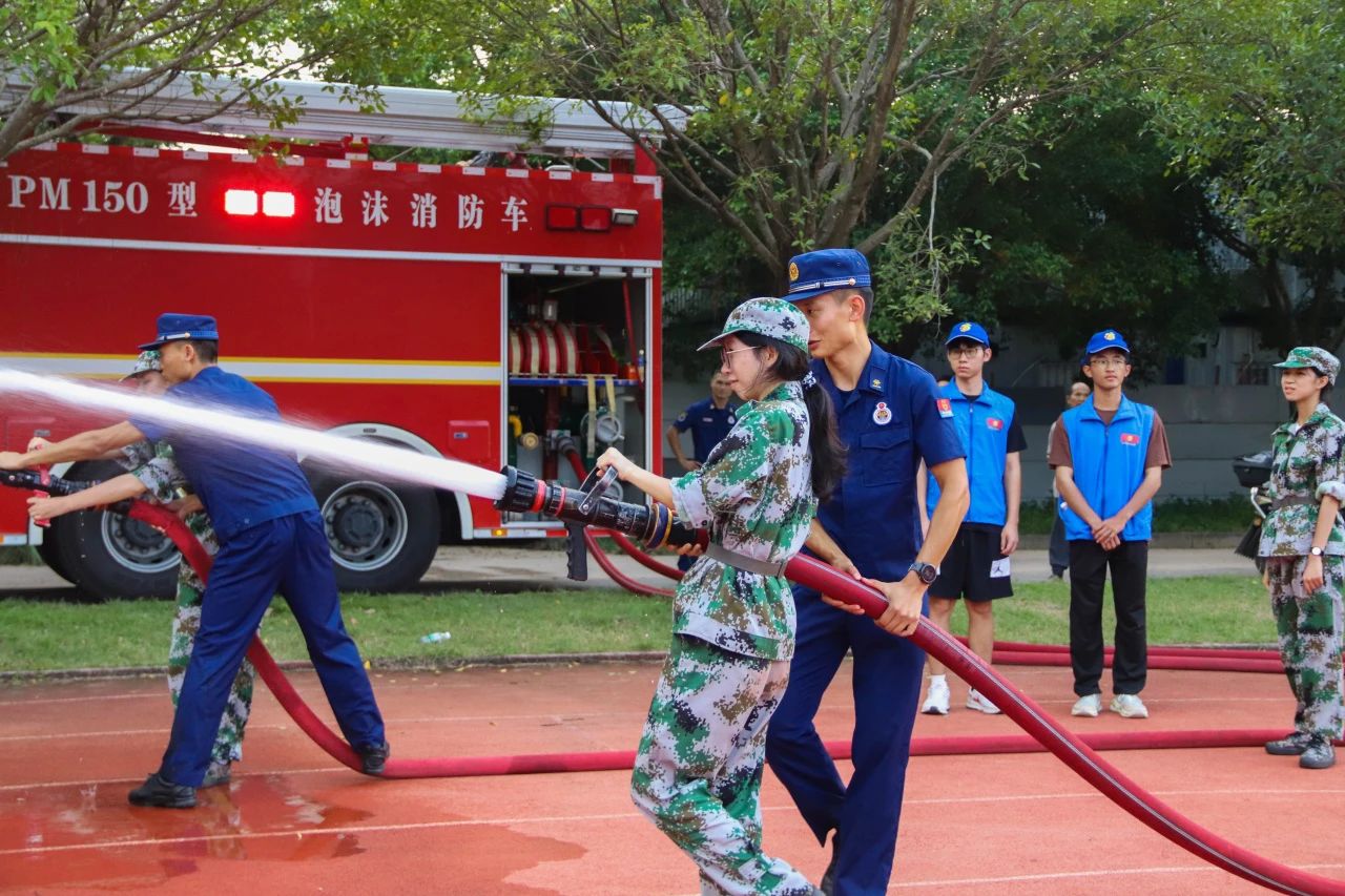 消防专员向新生详细介绍了消防车的各项功能和用途,并邀请了新生们登上消防车后座,感受消防员们日常出车的工作环境。随后,消防专员指导同学进行消防车水带灭火体验。通过此次参观学习体验,新生们不仅增长了消防安全知识,还深刻体会到了消防员在维护社会安全稳定中的重要作用。