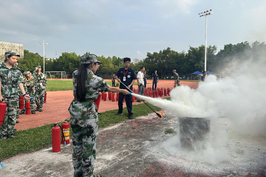 广州市增城区荔城消防救援站陈奕帆班长结合校园典型火灾事故案例,向新生们讲解了校园常见火灾隐患、日常防火常识、初起火灾的扑救方法以及快速安全逃生自救等技能。在活动过程中,通过“一问一答”的互动形式与新生们充分互动,让新生们全面掌握实用的火灾防范知识和逃生要诀,使得消防知识深入人心,新生们收获颇丰。