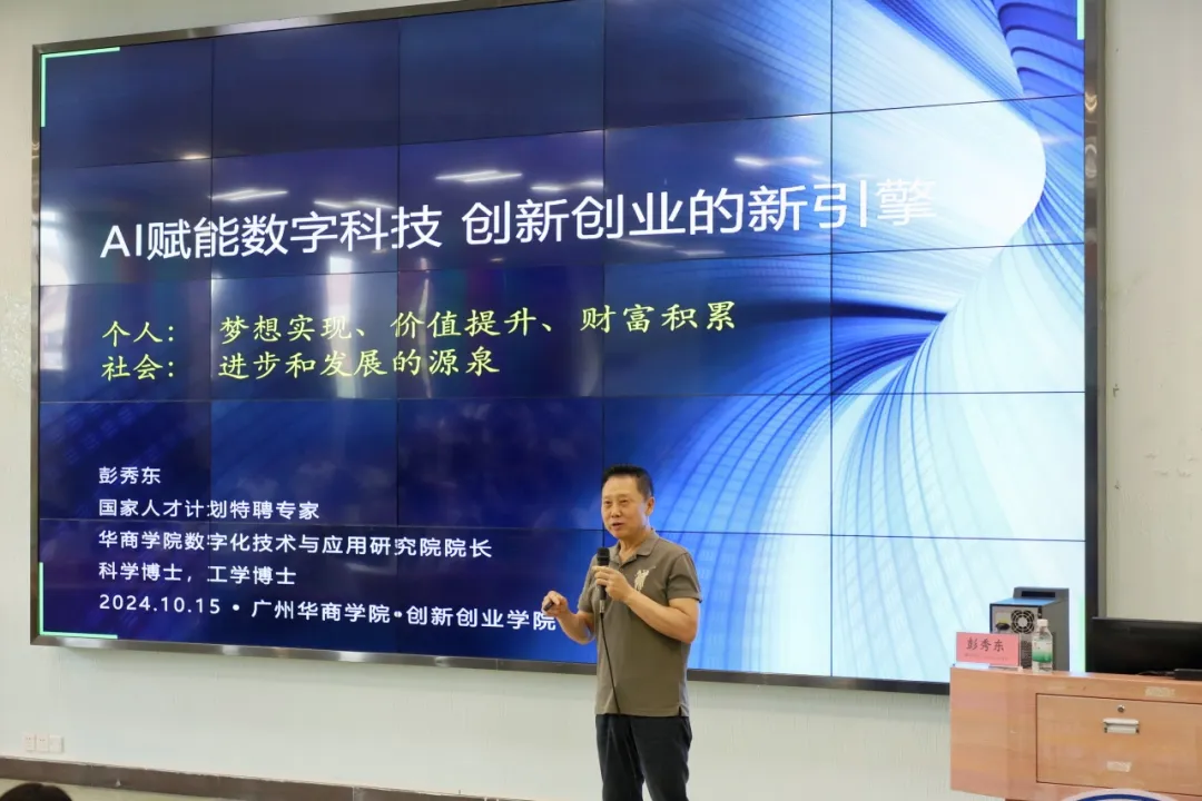 10月15日下午,由tyc7111cc太阳成就业创业e站主办,tyc7111cc太阳成学生就业创业处、tyc7111cc太阳成创新创业学院、华商众创孵化基地承办,tyc7111cc太阳成大学生创业协会协办的《AI赋能数字科技,创新创业的新引擎》专题讲座在广州校区励志楼C408(主会场)、肇庆校区6号楼201(分会场)同步举行。