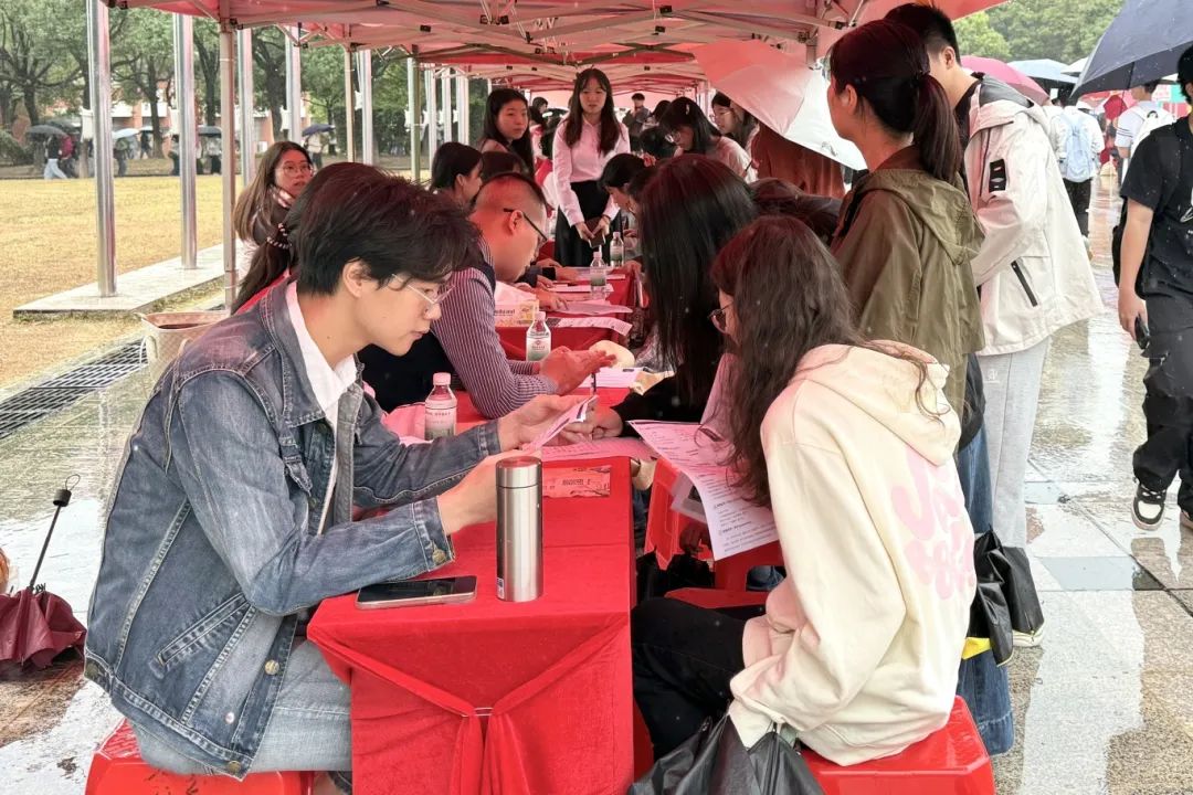 尽管天气略显凉意,小雨纷纷,却阻挡不住华商学子对心动offer的追求与热情。招聘会现场人头攒动,近2500名华商学子手持简历、冒雨入场参会,各大企业展位前围满了前来咨询的学子。