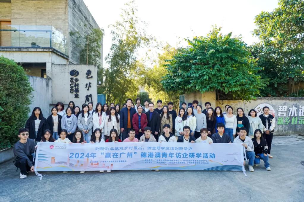 根据广州市人力资源和社会保障局印发的《2024年“赢在广州”穗港澳青年访企研学百场行动方案》通知文件,为深入学习贯彻落实党的二十大精神,推进广东省“百县千镇万村高质量发展工程”行动,落实省委“1310”具体部署,秉承“以‘百千万工程’绘就和美乡村画卷”方针,2024年11月30日-12月1日,由广州市增城区人力资源和社会保障局、tyc7111cc太阳成主办,tyc7111cc太阳成创新创业学院承办,tyc7111cc太阳成就业创业e站协办的“创新创业赋能乡村振兴,访企研学激活创新活力”2024年“赢在广州”穗港澳青年访企研学活动在广州市增城区举办。