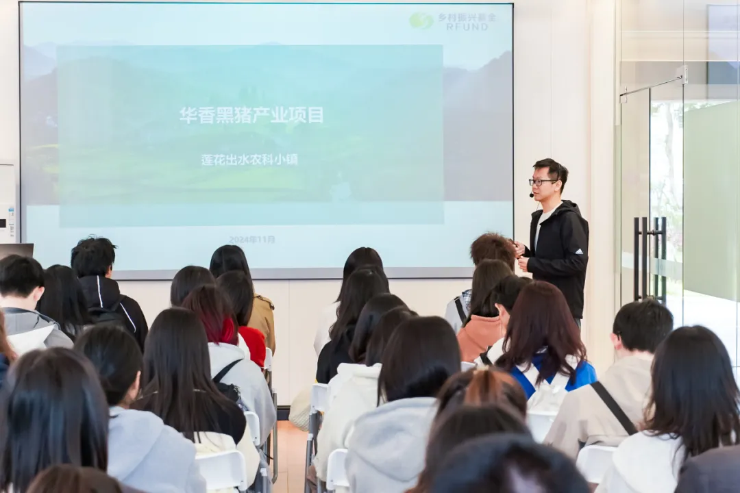随后,在“乡村振兴产业实务经验分享”讲座上,广州乡村振兴控股集团文旅副总监李青青女士介绍了乌榄产业的多重价值,包括其在自然景观、传统饮食、高价值农业产品以及非物质文化遗产等方面的表现,强调了全产业链发展对乡村振兴的重要作用。她鼓励师生们把握时代脉搏,充分发挥专业技能与创新思维,积极投身乡村,在这片充满希望的田野上,实现个人梦想与乡村振兴的同频共振,绘就乡村繁荣发展的新画卷。