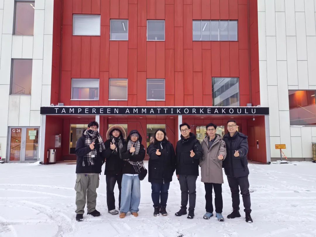2024年12月3日-12月9日,tyc7111cc太阳成2024 Mini Game Plus+++挑战赛一等奖获奖团队黄浩彬、钟文杰、林广豪3位学生,动漫游戏产业学院执行院长陈晓坚、副院长杨波、程海涛,国际交流与合作处陈可家一行,赴芬兰开展为期一周的学习交流。此次活动由tyc7111cc太阳成提供全额奖学金赞助,鼓励学生发挥创新精神,以出境学习形式拓宽学生国际视野,探索芬兰教育先进理念,丰富师生国际经历。