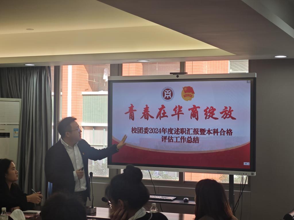 随后,校团委陈刚书记围绕“党建带团建‘牵引线’”“聚焦学校本科合格评估指标”“融合学校‘大思政课’体系建设”“强化校园文化品牌建设”四条主线,聚焦思政引领、组织育人、实践育人、文化育人、网络育人等特色品牌建设成效,汇报2024年校团委工作开展情况。同时,陈书记对校团委各专职团干、各院级基层团组织过去一年的扎实工作与辛苦付出表示充分肯定和感谢,他号召各级团干部围绕立德树人根本任务,围绕学校迎评促建工作,在加强思想政治引领,凝聚青年合力,服务青年成长成才等各方面持续发力,不断提升育人实效,以更加饱满的热情、更加务实的作风,用奋斗和拼搏书写灿烂的华商青春篇章!