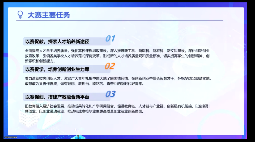 讲座伊始,丁云凤女士深入解读了中国国际大学生创新大赛。她详细阐释了大赛的目标与任务,从比赛赛制、赛程安排、参赛方式和要求等方面进行了细致入微的讲解。丁女士特别强调,大赛对于推动高校双创教育发展、培养大学生创新创业能力具有非凡意义,鼓励同学们积极参与,在大赛中锻炼自我、积累经验,全方位提升综合素质。