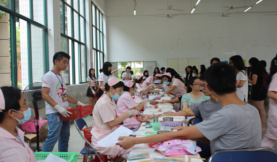 2015年6月2日下午,在学院党委的领导下,院团委组织开展了“以我热血绘太阳,让你生命撒阳光”为主题的爱心献血活动,本次活动由华商学院红十字会学生分会与增城血站联合承办。据统计,本次参加献血的师生人数一共有300余人。此次献血活动,院团委高度重视。献血前期,学院团委通过各系辅导员、各系团总支、学生分会、校级学生组织以及各学生社团在全院进行线上和线下宣传,并通过“献血讲座”动员更多的同学加入爱心献血的行列,凝聚更大的力量去帮助需要帮助的人。