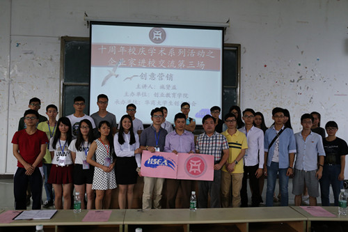 2015年5月16日下午3点,华商学院十周年校庆学术系列讲座之“创意营销”讲座在励志楼B207举行,广州万科酒店管理有限公司营销总监施贤益先生担任本次讲座的讲师。莅临本次讲座的嘉宾有:创业教育学院易欣院长、协会指导老师杨俊、华商大学生创业协会会长团、华立创业交流协会会长以及各大社团组织代表。