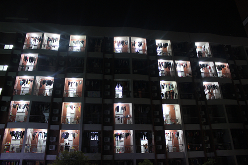 八点三十分,西2宿舍楼和西4宿舍楼的灯幕表演震撼上映。西4宿舍楼的倒数“3 2 1”的灯幕变幻让观看的同学赞叹不已,西2宿舍楼的60+的图案更是引起了同学们的欢呼和掌声。地球一小时,熄灯一小时,举办这一系列的行动旨在呼吁同学们人走灯关,减少能源消耗,希望同学们重视全球气候问题,从而尽我们的绵薄之力去应对全球变暖的问题。