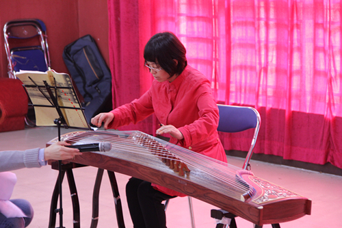 华商女教师队伍中才艺辈出,除了有歌曲演唱之外,更兼有乐器演奏和舞蹈表演。现代教育技术中心的林伟璇老师为大家先后带来两首口琴演奏曲《Moon River》和《送别》,医务室的陈丹维老师则通过古筝独奏为大家演奏了《晚霞中的红蜻蜓、嘎达梅林》。淙淙的乐声从指尖流出,如果说前面的歌唱节目给予了大家动的美感,两位老师的演奏则为我们营造了宁静的氛围。蔡美参老师的一舞《吉祥西藏》,更是惊艳四座,舞毕,有不少老师表示意犹未尽,纷纷要求蔡老师再来一舞。