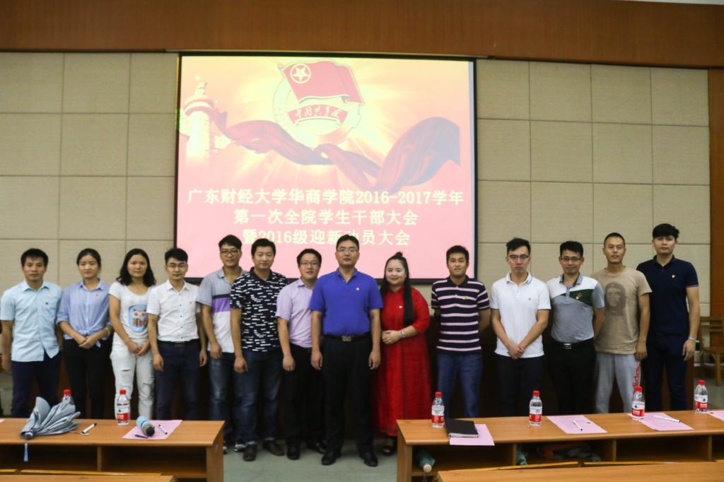 为进一步加强我院学生干部队伍建设,发挥学生干部的职能作用,增强学生干部思想道德意识。9月2日下午,学院团委组织召开2016-2017学年第一次学生干部代表大会暨2016级迎新工作动员大会在励志楼C208举行。出席本次大会的领导嘉宾有:学院团委杨宪书记、学院团委刘苗副书记、学院团委陈刚副书记、学院团委常委吴泽佳老师、学院团委常委黄秋铭老师、学院团委黄剑年老师及二级院(系)团总支书记、学生会指导老师以及各学生组织、班干部代表。