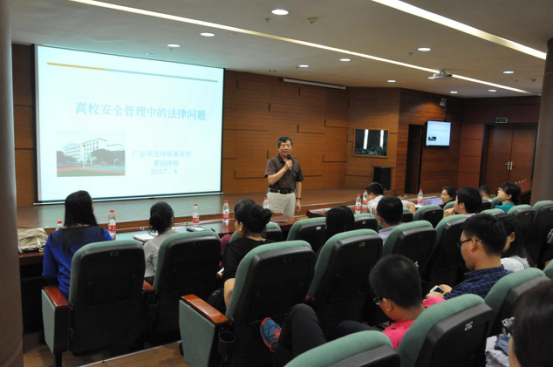 覃律师的讲座主要分为两个部分:第一部分是教职员工管理的安全问题,主要介绍了教职员工的分类管理:上下班的工伤认定及女职工相关的劳动法律。第二部分是大学校园安全危机现状,主要从学生管理工作中的安全问题、加强校园安全的有效途径、大学校园里的安全事件类型三个方面进行讲解。覃律师的讲座内容跟参加讲座各位的切身利益和日常工作紧密相关,大家听得特别认真。