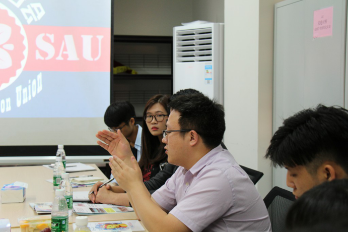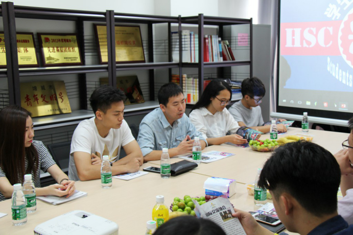 我院社联负责人为来宾播放了我院社团建设的介绍视频,接着通过PPT讲解《怎样做好校园公众号》,努力打造好网络宣传阵地。两校学生代表随后进行深入交流学习,在社团管理上进行探讨并交换了意见。