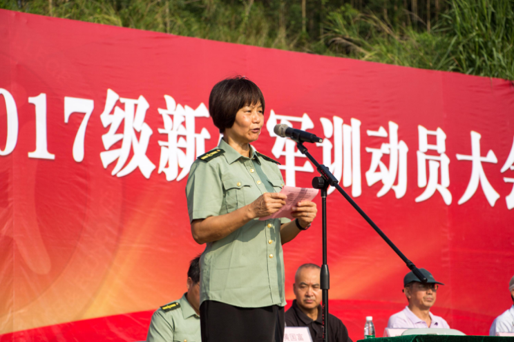 来自文学院外语系的参训学生代表郑晓薇同学上台发言。她认为,军训是展现新生们精神面貌的绝佳机会,也是一个能让人的身心得到磨练的过程。她希望新生们在军训中做到严格要求自己,同时在军训中展示自己的青春风采。