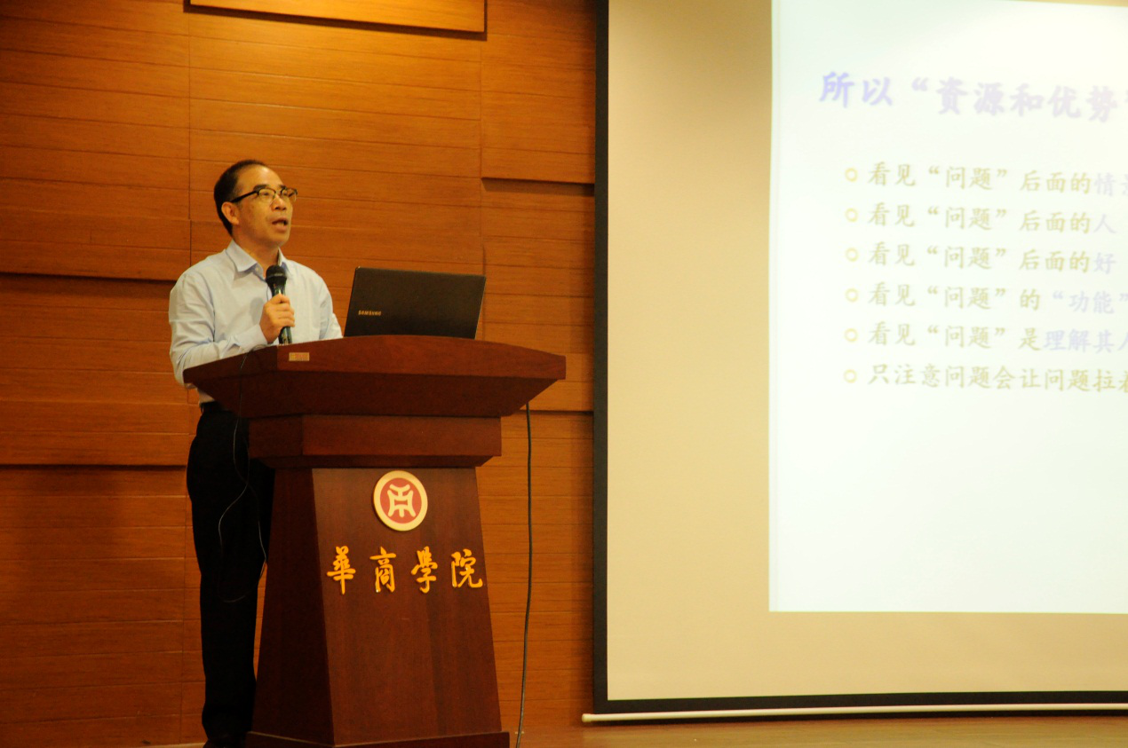 5月11日上午,为了更好地开展本届“5.25”心理健康教育月的活动,学生处联合国际学院邀请美国堪萨斯大学段昌明教授在图书馆报告厅举办了主题为“心理健康:谁为我定义,我怎样追求?”的讲座。郭银华副院长主持了本次讲座。参加本次讲座的有王锦秀副院长、国际学院余惠芬院长、国际交流与合作处王文忠处长、学生处李希恒处长、学生处熊桂桃副处长以及全体心康老师、全体辅导员、部分心康学生代表。