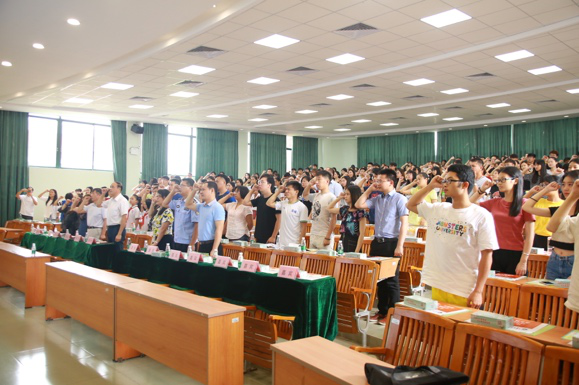学院党委苏宁书记为学生代表授予“2018年暑期三下乡禁毒调研队”旗帜。伴随着授旗仪式的结束,全体人员起立,在领誓人带领下完成了禁毒宣誓仪式。