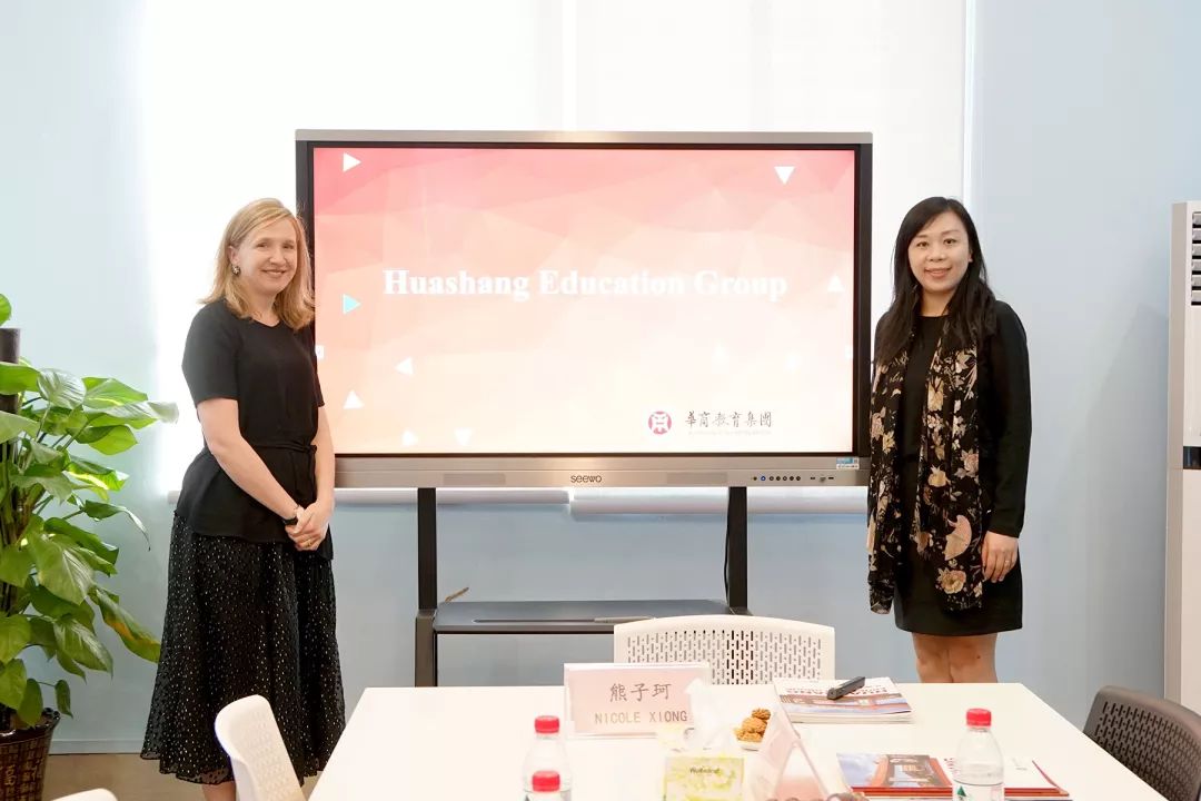 访问伊始,贺蓉歌女士一行到华商国际学院进行参观交流,听取了有关华商教育集团发展历程和主要业务板块的介绍。廖伊曼副董事长在会谈中表示,近年来,华商教育集团高度重视国际合作与交流,一直把对澳交流作为学校国际合作的重要组成部分和优先发展方向之一。希望并感谢澳大利亚驻华大使馆为华商国际化办学及对澳交流给予更多的支持和帮助。