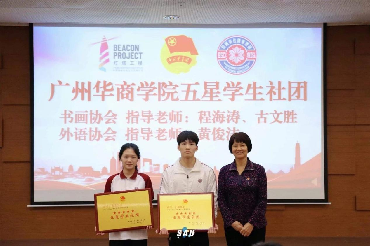 (王锦秀副校长为我校2022年度五星社团颁发牌匾)