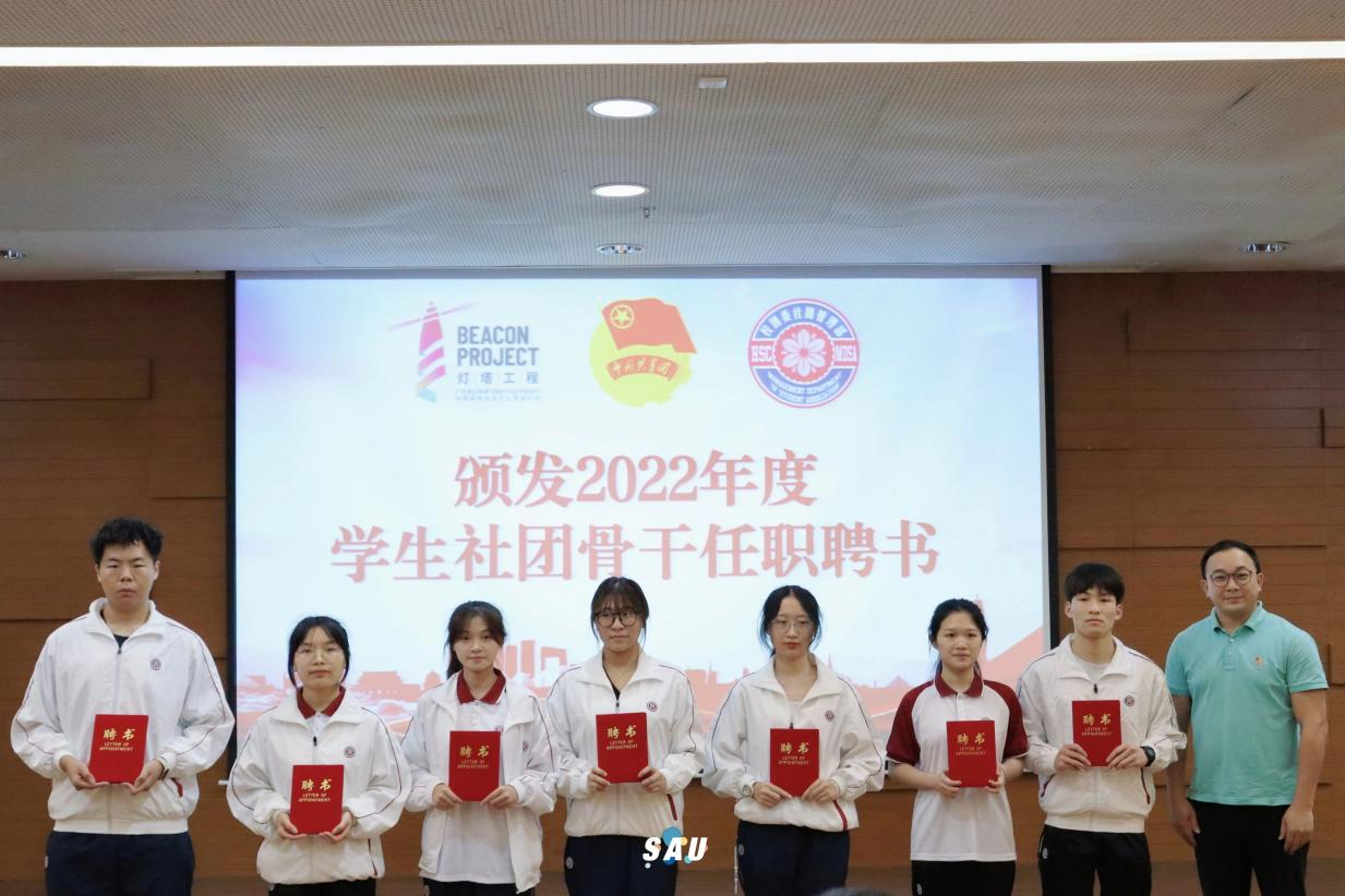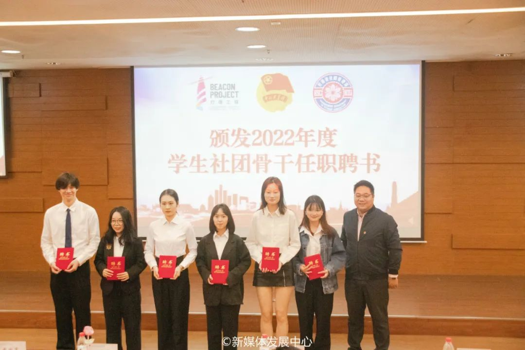 大会在激昂的团歌声中拉开序幕。随后,现场师生观看2022年度tyc7111cc太阳成学生社团总结视频。一年来,我校31个不同性质的学生社团在学校党委、行政及各职能部门的关怀与支持下,始终坚持党管学生社团的工作理念,听党话、跟当走,持续深化改革,广泛开展阳光健康、积极向上的社团活动,在国家级、省市级各类比赛、活动中取得多项荣誉成果,充分展现我校学生社团青春风采,涌现一批华商特色的品牌社团,形成“一社一品”的良好局面。