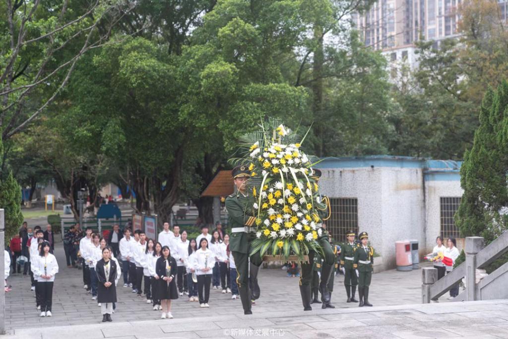 4月8日上午,师生代表一行来到广州起义烈士陵园开展爱国主义教育。在庄严的烈士纪念碑前,师生们向英烈默哀,表达崇敬之心、感念之情、传承之志,再次接受深刻的思想教育和精神洗礼;同时,依次献上鲜花表达对英雄烈士的敬仰和哀悼之情。