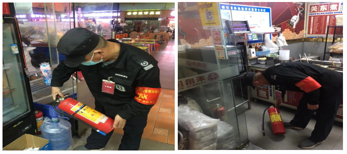 随后,检查组认真查看了商超各处的消防安全状况,主要包括消防设施是否完好、消防通道是否通畅、天燃气管是否定期检测或更换等。