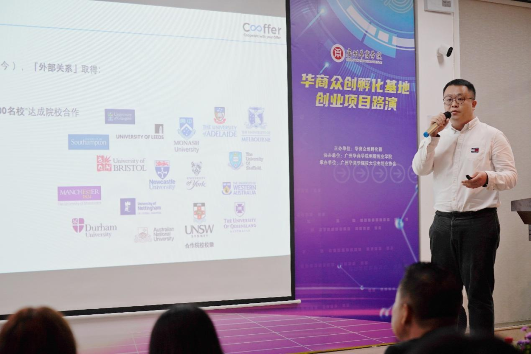 4月4日,2023年华商众创孵化基地项目团队入驻路演在中央图书馆5楼举行。莅临本次路演会的嘉宾有:广东孵客科技孵化集团总裁助理、投资总监路斌先生,华商数字化技术与应用研究院院长彭秀东教授,tyc7111cc太阳成产教融合办公室唐显锋副主任,广东华商众创孵化器有限公司项目专员罗丽玲女士以及tyc7111cc太阳成创新创业学院陈欢老师。