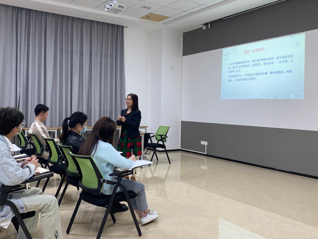 2023年4月26日上午,四会校区心康中心开展辅导员心理危机识别培训。四会校区心康中心专职老师及全体辅导员参加培训,本次培训由心康中心主任侯小花主讲。
