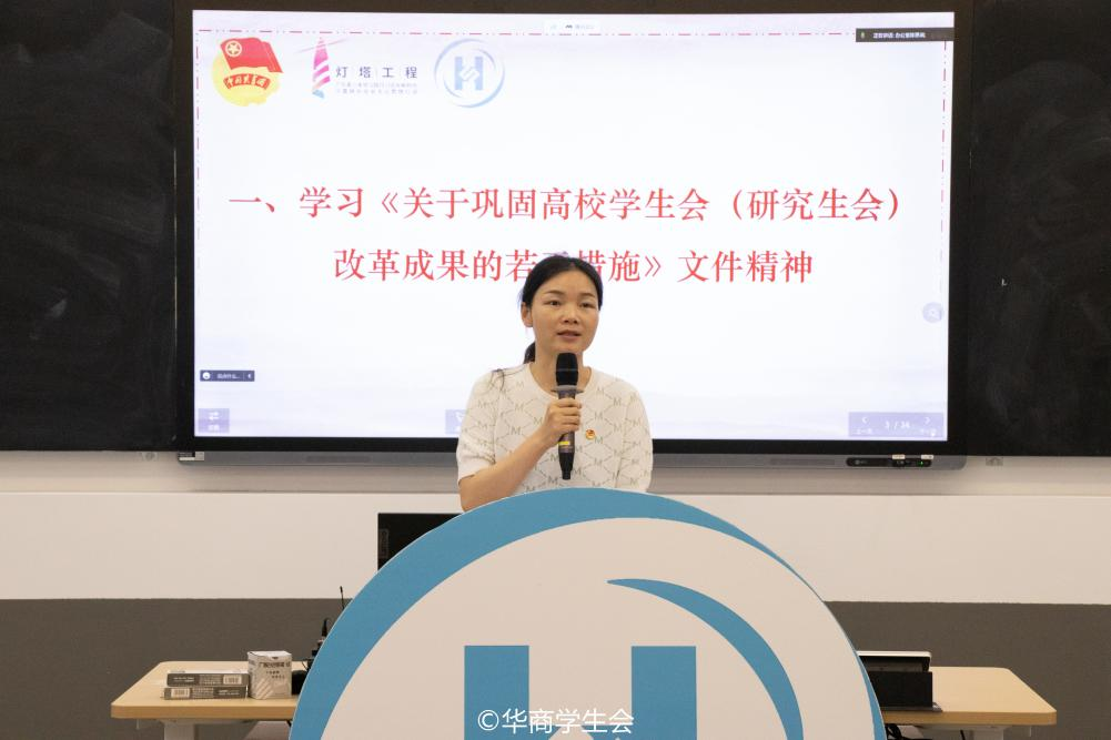 夏仲老师结合我校学生会实际情况,指出当前学生会组织建设及工作开展所存在的不足,强调学生会骨干要把牢政治关、学业关、作风关,以政治理论学习为重点,突出服务同学宗旨教育和纪律作风教育,扎实为同学们开展一批小而实、小而美的“我为同学做实事”服务项目,共同维护富有理想、关心同学、清新阳光的学生会组织形象。