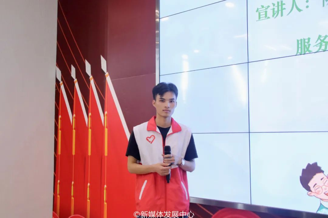 优秀志愿者代表张桦围绕前期准备、工作内容、收获与感悟、注意事项四方面展开宣讲。她详细和大家分享了具体工作内容。基层工作事无巨细,复核养鸡场、社区安全用电、隐患排查、消防安全排查、门店和小作坊排查、交通安全排查等数不尽的繁琐事项是她服务基层的碎片。她带着一片“小我融入大我,青春献给祖国”的真心,带着一份“祖国需要处,皆是我故乡”的信仰,扎根基层,去找寻“我要做什么样的人,祖国需要什么样的我”的青春答案,在基层治理、乡村振兴第一线展现华商人的青春担当。
