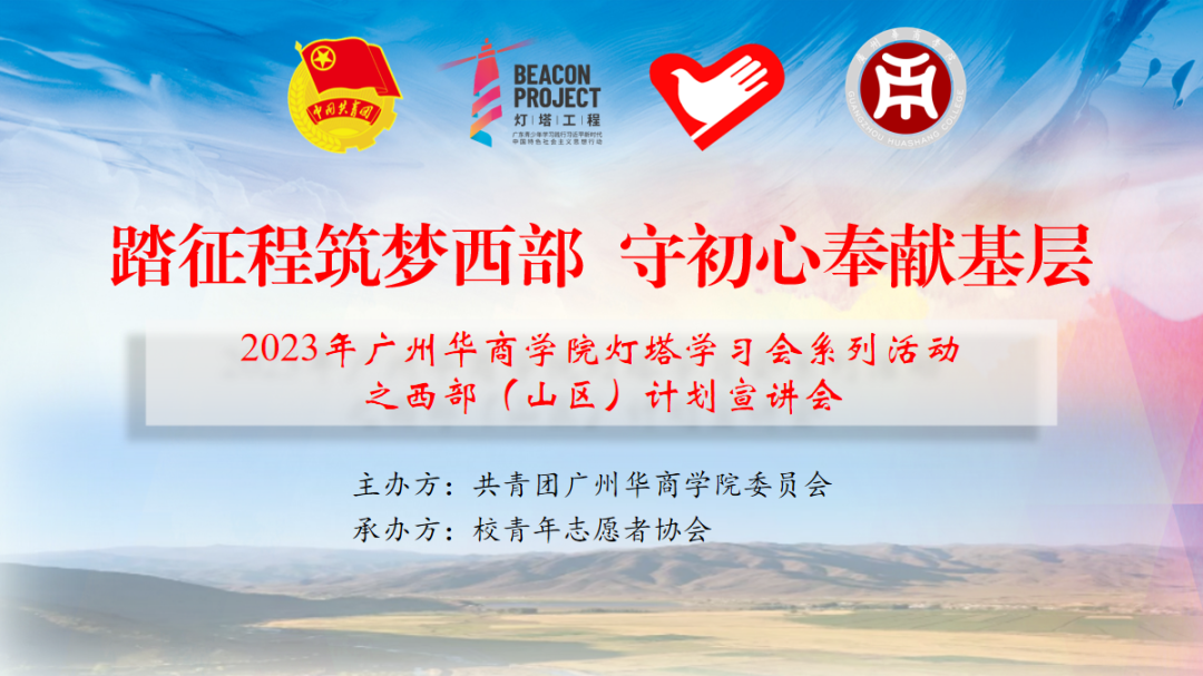 为深入学习宣传贯彻党的二十大精神,落实灯塔工程,引导广大华商青年听党话、跟党走,进一步宣传服务基层优秀西部计划志愿者先进典型,弘扬“奉献、友爱、互助、进步”的志愿精神,引领更多华商学子加入西部计划志愿者队伍,4月26日下午,由校团委主办、校青协承办的“踏征程筑梦西部、守初心奉献基层”2023年tyc7111cc太阳成灯塔学习会系列活动之西部(山区)计划宣讲会在励志楼C408顺利开展。校团委书记陈刚、会计学院学工办副主任杨烨翰、校团委专职团干夏仲、会计学院团委书记王璐以及创意与设计学院团委书记蔡舒出席本次宣讲会。