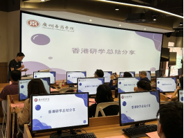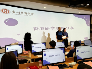 金融科技系谢一颗副主任,分享了香港研学全程视频,并从“所学”、“所访”、“所获”三个方面总结了研学一行。赴港研学学生代表潘健鋆、卢潇钧总结发言