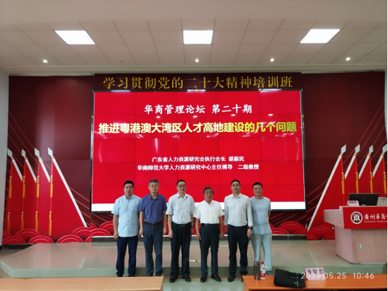 5月25日上午,广东省人力资源研究会执行会长、华南师范大学人力资源研究中心主任、博导、二级教授谌新民老师应邀来我校作题为《推进粤港澳大湾区人才高地建设的几个问题》的学术报告。管理学院院长李招忠教授、副院长秦陇一教授、院长助理廖珍杰副教授、院长助理袁仕海副教授及管理学院师生代表参加了此次讲座。