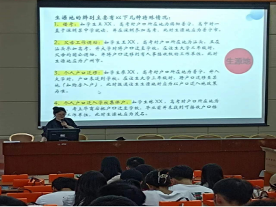李丹琪老师在励志楼B307举行主题班会,讲解了高校毕业生的生源地,是指现户籍所在地,所有生源地需填写到区/县一级(东莞市、中山市例外)。毕业之后换了新工作单位的同学,注意要到小程序更新就业信息。除了就业小程序,同学们不要在别的网址更新或者修改或者填写待就业等信息。最后,李丹琪老师强调,同学们应注重学习人生经验和社会知识,坚持知行合一,加强锻炼,增强本领。作为新时代大学生,要牢记习近平总书记的谆谆教诲,树立远大理想、热爱伟大祖国、勇敢地肩负起新时代中国青年的责任使命。