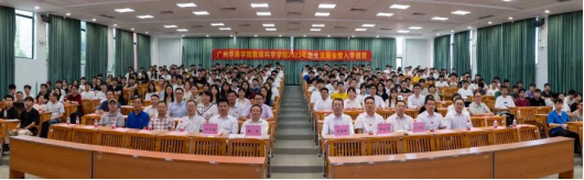 学院常务副院长赖庆副教授代表学院的全体师生向来自五湖四海的青年学子表示热烈的欢迎和诚挚的祝贺,赖院在致辞中向同学们提出两点希望:希望同学们厚德励志,心怀强国,努力成为具备高尚品德与坚定志向的国家栋梁之才;希望同学们博学创新,学有所成,努力成为一个有潜力、有思想、有价值、有前途的华商青年。