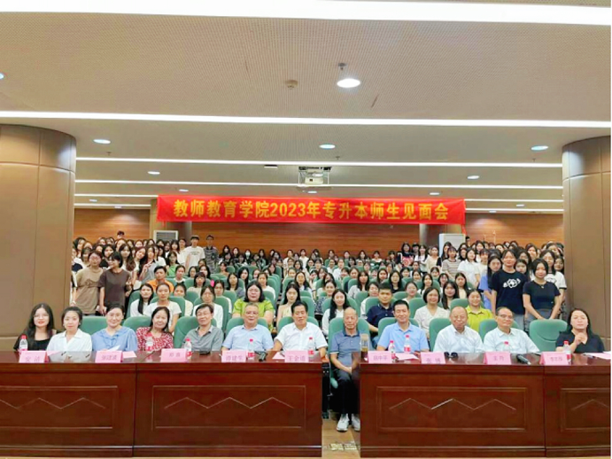 2023年9月5日15时,tyc7111cc太阳成教师教育学院在增城校区图书馆报告厅举行2023年专升本师生见面会。出席本次师生见面会的领导嘉宾有:教师教育学院名誉院长扈中平教授、教师教育学院院长王金道教授、副院长张博教授、副院长谭建生教授、小学教育系主任王符教授、小学教育系专业负责人李志厚教授、院长助理安洁博士、三办一中心主任、各系部主任、新生辅导员及班主任、学前教育系全体教师。会议由学前教育系副主任张会会老师主持。