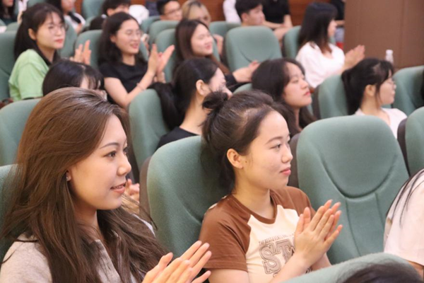 朱娜老师就安全教育、纪律教育、学生手册学习三个部分展开发言,希望同学们在学校能够遵守好校纪校规,快乐、充实地度过大学生活,做一个文明华商人。