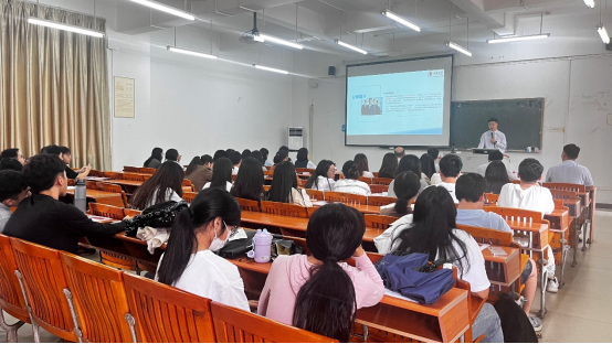 中国建设银行黄志敏主任对中国建行及其广东省分行进行介绍,对“行有建树 梦无边疆!建行广东省分行2024年度秋季校园招聘”情况做了简要阐述,对招聘岗位情况、要求以及职业晋升途径做了详细的阐述,并鼓励和欢迎毕业生们进行网申(截止时间为10月13日),加入中国建设银行。