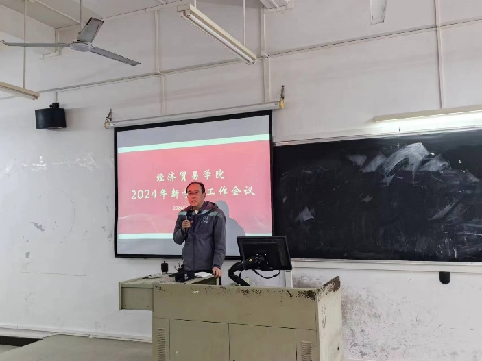 2024年3月5日,经济贸易学院在厚德楼C212召开新学期工作会议,全院教职工齐聚一堂,共同谋划学院新学期高质量发展。会议由经济贸易学院李广明院长主持,副院长李伟、院长助理石立、赵慧琴,学生工作办公室主任宋元跃,学院办公室主任黄明亮以及全体办公室成员和专任教师参加此次会议。