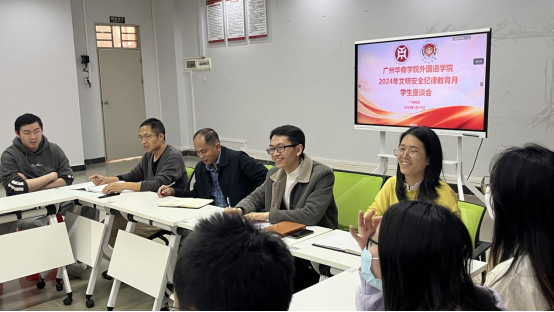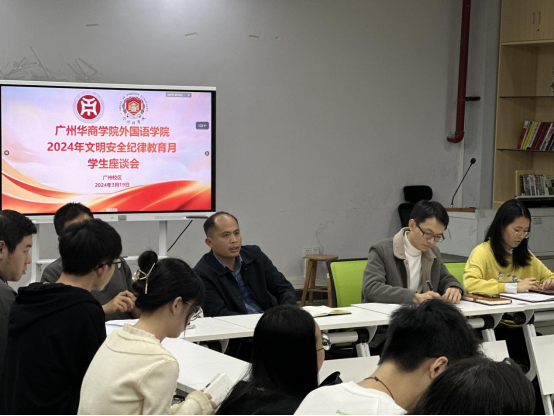 3月19日下午,为深入了解学生的思想、学习、生活状况,充分听取和征求学生对日常教学和管理的意见和建议,外国语学院在广州校区厚德楼B101召开2024年文明安全纪律教育月学生座谈会。外国语学院党委副书记兼副院长陈少鸿老师、学工办副主任何顺发老师、辅导员张超老师、张艳娥老师、江嘉丁老师以及兼职辅导员李怡静、陈冬梅出席本次会议。会议由何顺发老师主持。