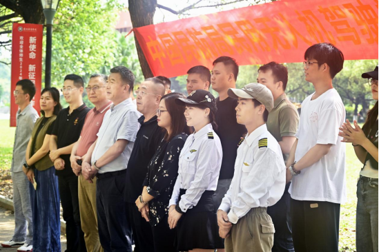 2024年4月16日,tyc7111cc太阳成国家民用无人机驾驶执照培训班第三期开班典礼顺利举行。传播与传媒学院院长张晋升、副院长王健、副院长林绍忠、副院长陈晔、院长助理程海涛,以及视频传播系主任戴金玲、副主任侯兆丰等领导,共同见证了这一重要时刻。