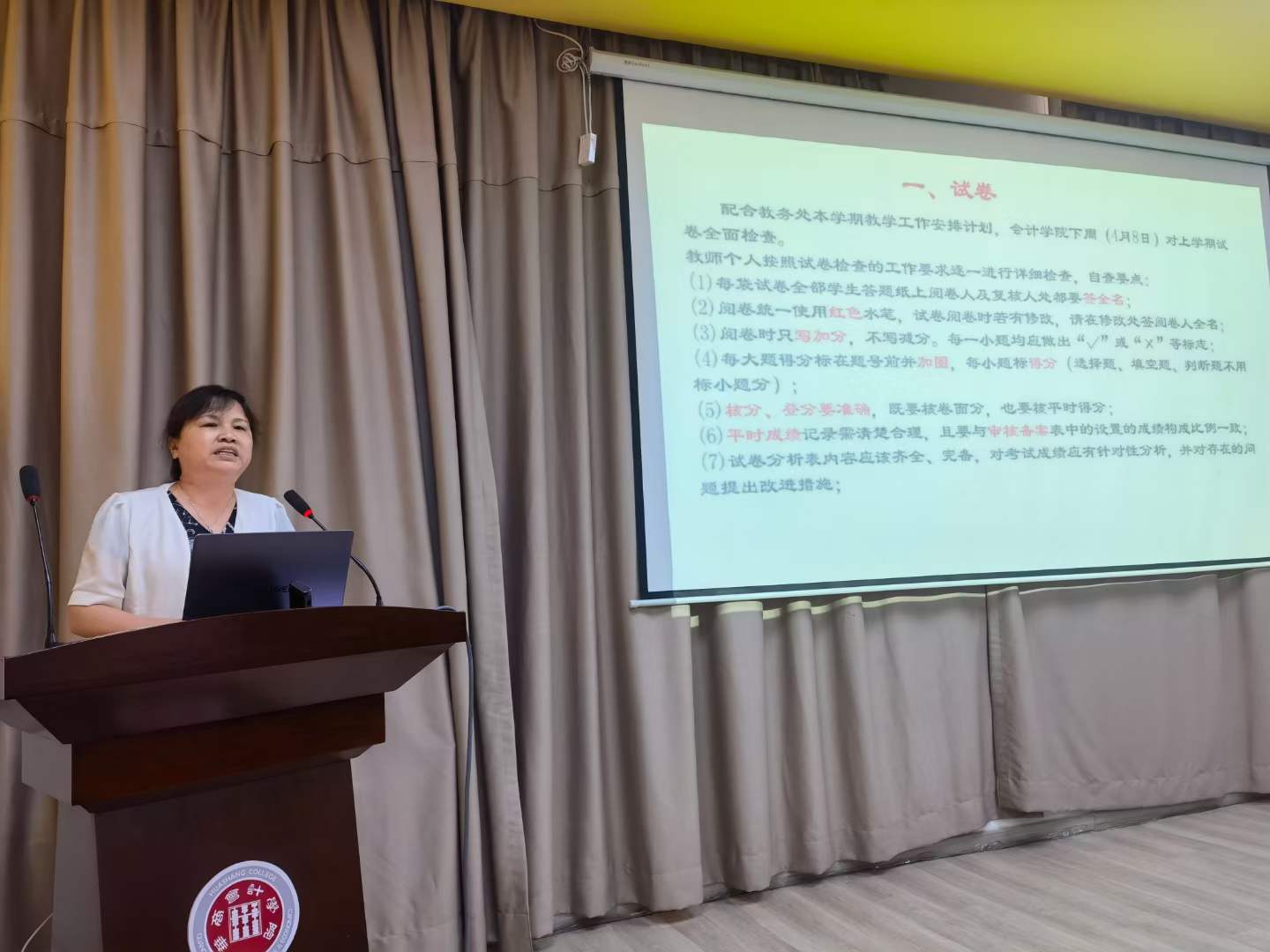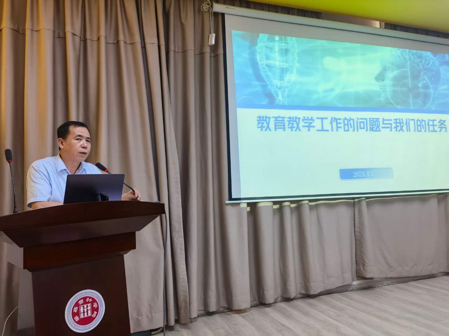 杨旻副院长首先传达了3月26日学校教学工作例会的会议精神,从试卷、毕业论文、课程建设、课堂教学及人才培养方案五个方面详细介绍了本学期教育教学的工作重点,分别做了以下工作安排:一是制定试卷自查方案,对照试卷归档要求,开展试卷全面检查;二是布置毕业论文定稿及学院答辩工作;三是按照合格课程、融合课程及一流课程三个层级完成课程建设工作;四是做好教学材料的修改完善及期中教学检查准备工作;五是启动2025版OBE理念下的人才培养方案。