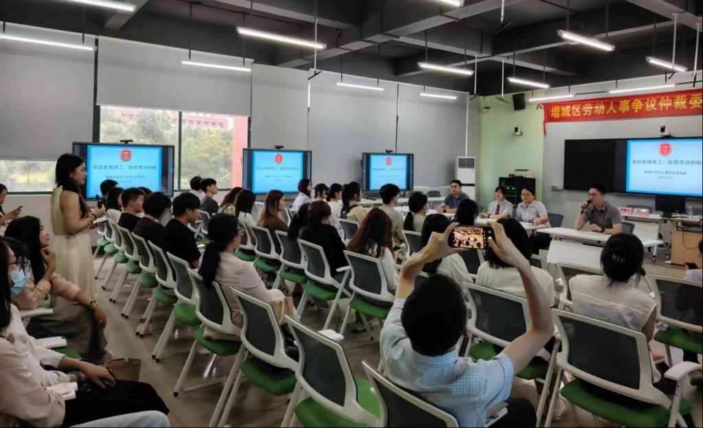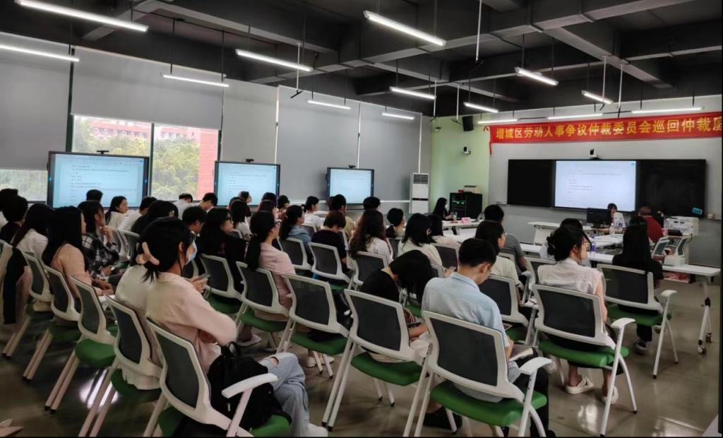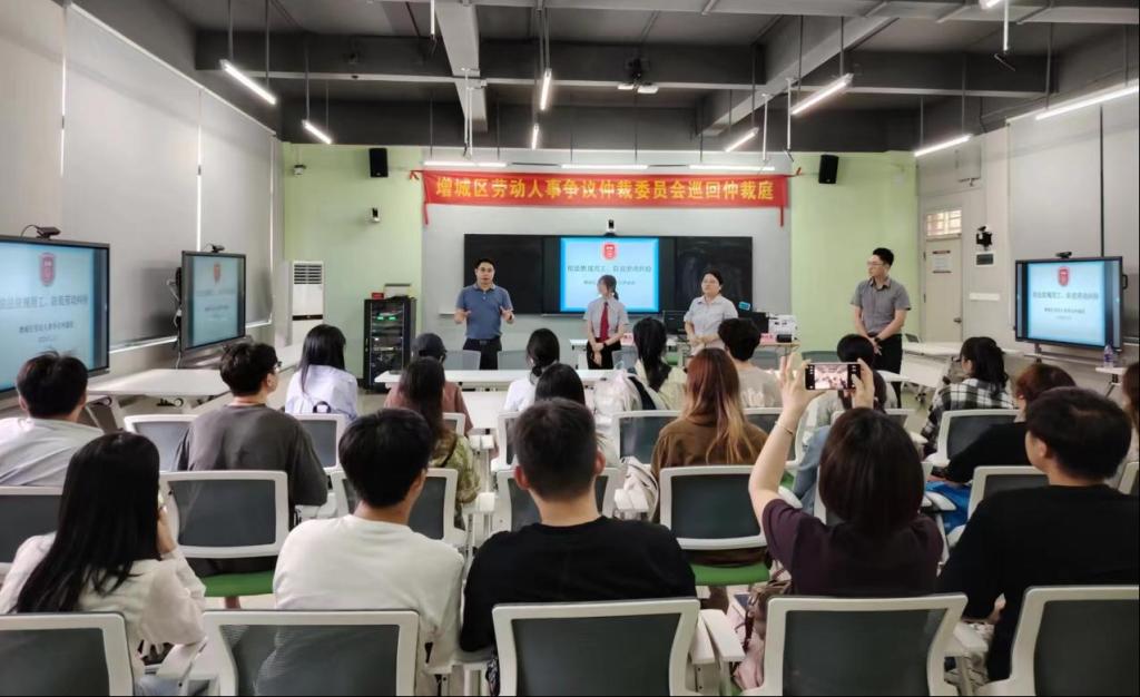为落实学校领导关于“深化产教融合,构建产学研创全方位、全过程、深融合的高质量产教融合机制”的指示,打造产教融合共同体,支撑政校合作新路径,管理学院、人力资源产业学院与增城区人力资源和社会保障局共同推动建立的“增城区劳动人事争议巡回仲裁庭”于2024年5月23日在tyc7111cc太阳成正式开庭。这是广东省首次将巡回仲裁庭设立在高校内,标志着政校合作、协同育人迈出了新的一步。
