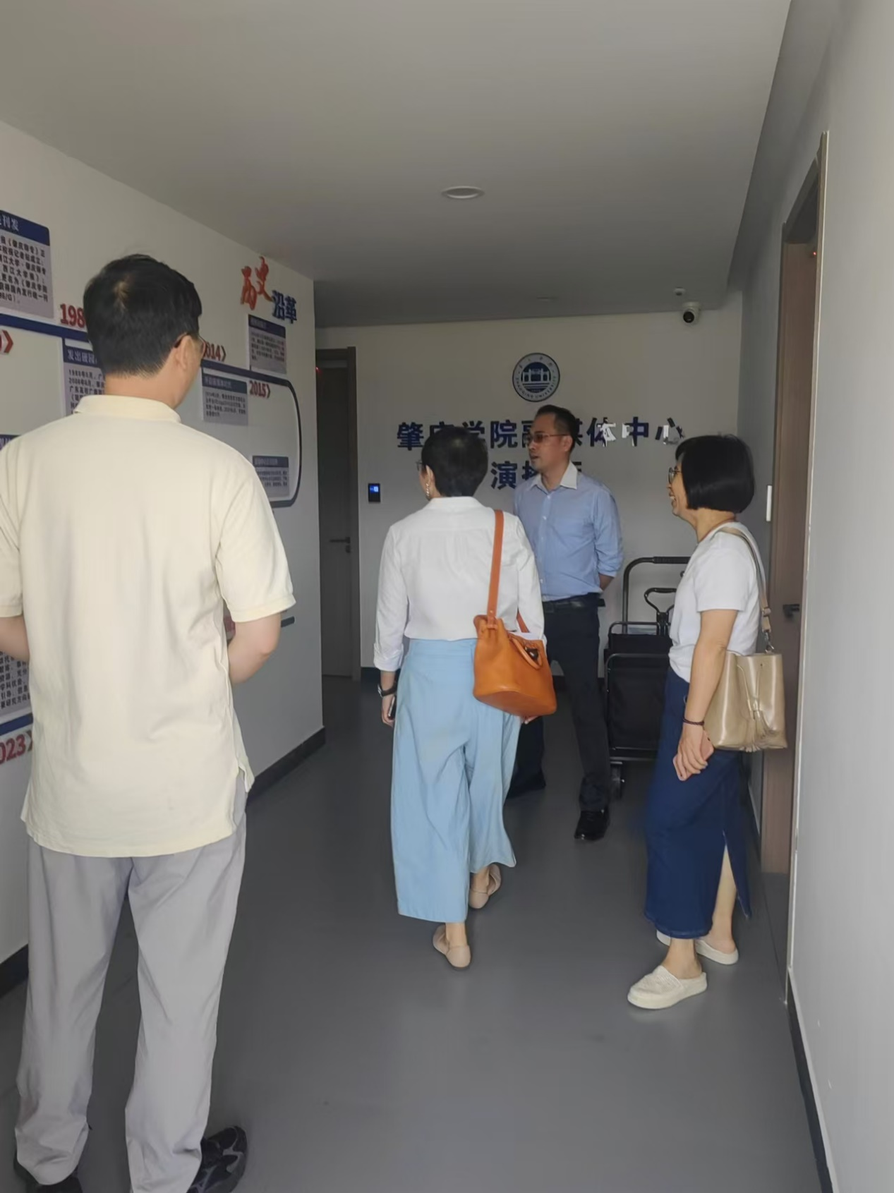 下午,华商学院文学院一行在陈爱香副院长、苏常副院长、陈伟江主任陪同下,参观了肇庆学院融媒体中心演播厅、省级实验教学示范中心、广播电视新闻实验教学中心等实践基地,学习肇庆学院省级基地和实验室建设中的优秀作法。