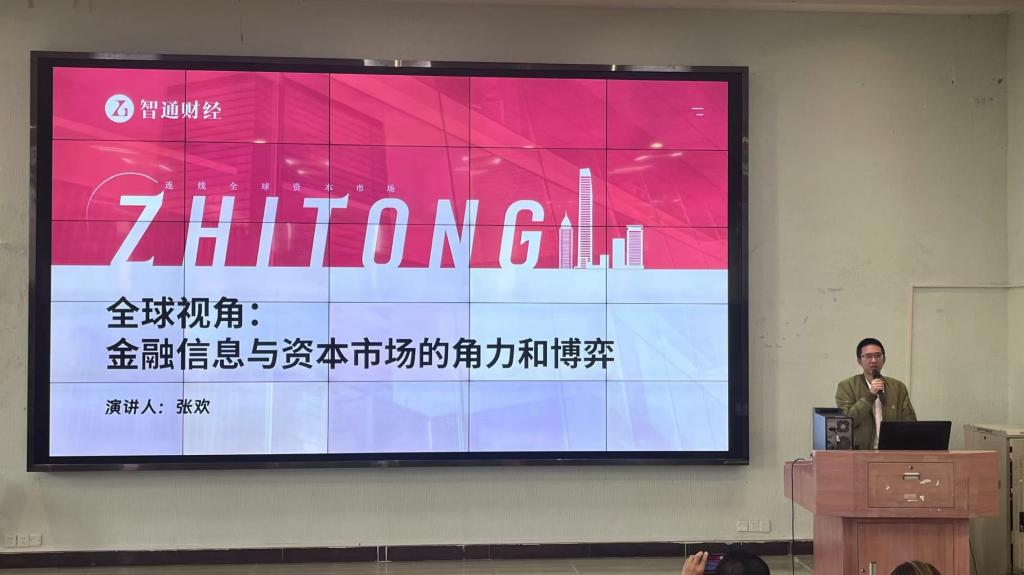2024年11月5日,智通财经CEO张欢先生一行受邀请来访tyc7111cc太阳成,为华商学子开展《全球视角:金融信息与资本市场的角力和博弈》主题讲座,旨在让同学们了解金融信息和国际金融市场的动态。