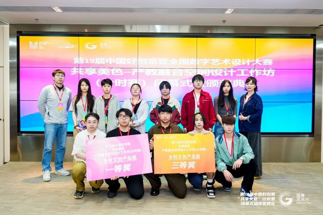 第十九届中国好创意暨全国高校数字艺术设计大赛国赛村基地活动“共享美色——产教融合空间设计工作坊”于2025年4月9日至13日在佛山市南海区狮山镇国赛村圆满收官。视频传播系主任戴金玲老师与黄毅老师、企业导师熊玉才共同指导,带领动画专业11名学子首次参加48小时AIGC赛道,实现零的突破。在48小时云端鏖战中,团队依托AIGC智能设计平台,最终在“乡村振兴”专项组斩获国家级一等奖1项、三等奖1项,以“AI创作设计+文化传承”的创新范式,体现出我校应用型人才培养的实践性。