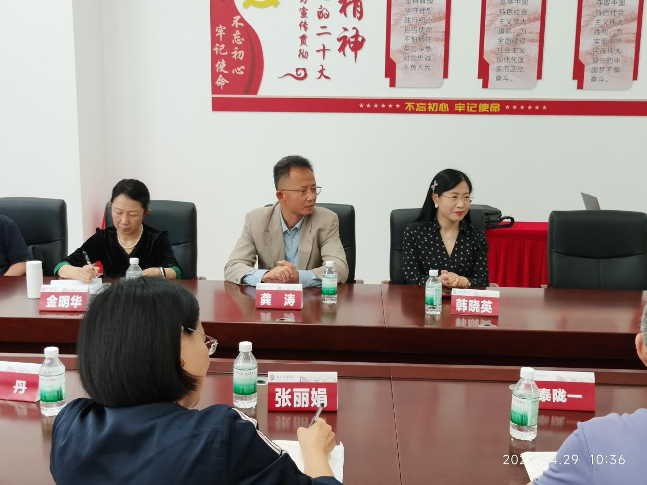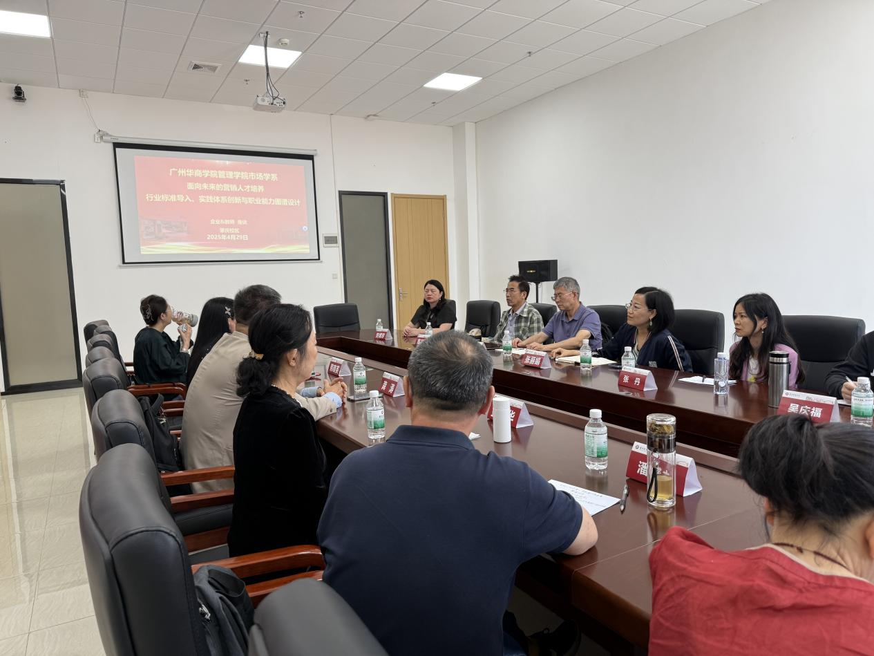 2025年4月29日上午,tyc7111cc太阳成教学督导组秦陇一教授、管理学院教学秘书梁林海、管理学院市场学系主任张丽娟、副主任马航通,市场学系金明华教授、高环成教授、潘盛之教授、吴庆福副教授、贺嫦珍副教授、任欣鹭博士、张俊、张丹等一行12人前往肇庆校区,出席tyc7111cc太阳成管理学院市场学系期中教师座谈会暨“面向未来的营销人才培养——行业标准导入、实践体系创新与职业能力图谱设计:企业&教师座谈会”。本次座谈会邀请了明美新能源集团韩晓英博士和拥有外企30余年工作经验的龚涛博士两位行业经验丰富的嘉宾,分享他们在新能源、快销品等领域的实践经验,为在场的教师们提供行业洞察。