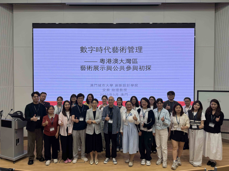 随后,澳城大创意设计学院安舜教授带来“数字时代的艺术管理——粤港澳大湾区艺术展示与公共参与初探”专题讲座。讲座围绕数字环境下文化艺术的运营逻辑与项目管理展开,结合澳门本地文化实践案例,探讨了艺术策展、跨界协作、地域文化与数字博物馆建设等热点议题,为教师们带来了前沿理念与教学启发。