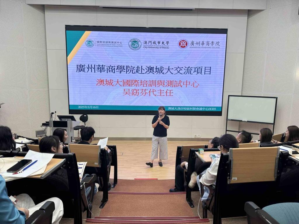 5月16日下午,教师团队抵达澳门城市大学。国际培训与测试中心主任吴窈芬女士致欢迎词,对数字传播学院教师团队的到访表示热烈欢迎,并简要介绍了澳门城市大学在国际合作与数字艺术教育方面的发展布局。数字传播学院院长助理侯兆丰副教授随后代表学院致答谢词,双方进行了纪念品互赠与合影留念,现场气氛友好热烈。