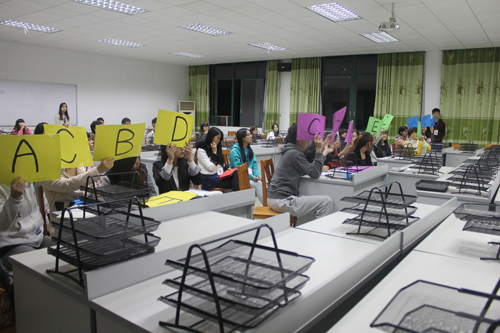 这次竞赛是分成必答题、抢答题、选分题、风险题4个环节进行,比赛结果采取积分制。比赛中由主持人出题,参赛者以团队模式进行团队赛,通过举牌和手机拨打方式进行抢答。每个小组都用自己学到的专业知识激烈讨论,当计时一到,选手们积极抢答,纷纷亮出自己的答案,答对时,大家都信心倍增,欢欣鼓舞。在场的观众还给以热烈的掌声。而当答案与自己选的不一样时,选手们也会刨根问底,发问原因,他们没有因此气馁,反而越挫越勇,气氛紧张而热烈。最后第三组和第十组以55分并排第一名,第六组以50分获得了第二名,竞赛进展顺利,取得了圆满成功。