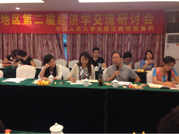 在教师交流探讨阶段,经济与金融系主任王德高教授就经济学课程建设、教学内容及教材改进等发了言,主要针对《财政学》、《国际税收》、《证券投资学》等7大课程教材中的不足发表了看法,并提出了改进措施。得到人大出版社领导和与会老师高度认可。